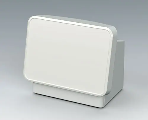 Passend für COMMUNITEC S Grundgehäuse. Vertieft liegende Fläche zum Schutz der Folientastatur und zur Integration eines großvolumigen Displays bis 11,5" (29 cm); plane Fläche darunter für frontseitige Bedienelemente und Anschlüsse. Integrierte Befestigungsdome für Platinen oder Montageplatten. Montage der Bedienfront von hinten.