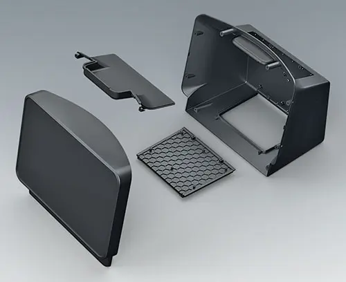 Grundgehäuse mit viel Platz für voluminöse Einbauten. Seitlich große Flächen, leicht zu bearbeiten, z.B. Schnittstellen für Anschlüsse, Lüftungsschlitze für erhöhte Wärmeabfuhr, etc. Gehäuserückseite mit zurückgesetzter Fläche zum Schutz eingebauter Buchsen, Stecker und Zuleitungen; zusätzliche Vertiefung ideal für Produktetikette. Integrierte Befestigungsdome für Platinen oder Montageplatten.