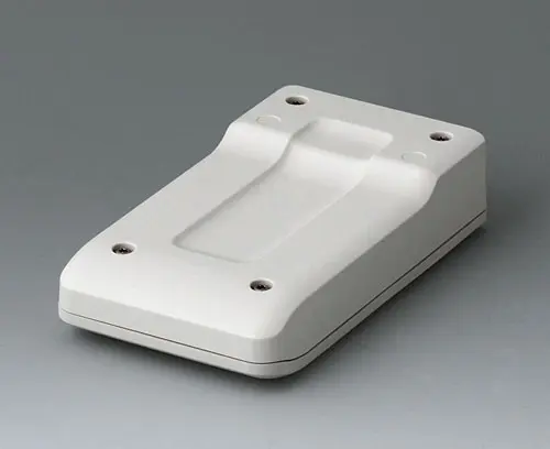 2-teiliges kleines Handgehäuse mit Dichtung in einem ergonomischen, robusten Design. Sicheres Halten durch eine Fingermulde im Unterteil. Vertieftes Bedienfeld zum Schutz der Bedienelemente. Befestigungsdome für Platinen und Bauteile im Ober- und Unterteil.