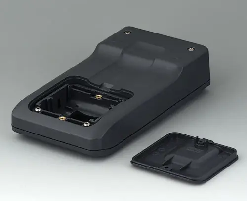 3-teiliges kleines Handgehäuse mit Dichtung in einem ergonomischen, robusten Design. Ideal für miniaturisierte Elektronik-Anwendungen. Sicheres Halten durch eine Fingermulde im Unterteil und einem körpernahen Schwerpunkt. Mit einem von außen zugänglichen Batteriefach für 3 x 1,5 V Mignon-Zellen (AA). Vertieftes Bedienfeld zum Schutz der Bedienelemente.