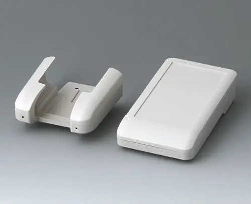 DATEC-COMPACT S 2-teiliges kleines Handgehäuse in einem ergonomischen, robusten Design. Sicheres Halten durch eine Fingermulde im Unterteil. Vertieftes Bedienfeld zum Schutz der Bedienelemente. Befestigungsdome für Platinen und Bauteile im Ober- und Unterteil.