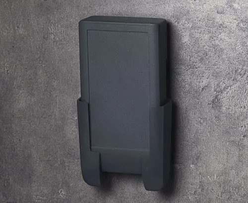 Spezieller Halter für DATEC-COMPACT M zur sicheren Verwahrung kabelgebundener und drahtloser Mobilgeräte. Mit großer Aussparung für Steckverbindungen. Die Befestigung erfolgt an der Wand oder sonstigen Bauteilen mit handelsüblichen Schrauben mit einem Kopfdurchmesser von 5,5 bis 7 mm.