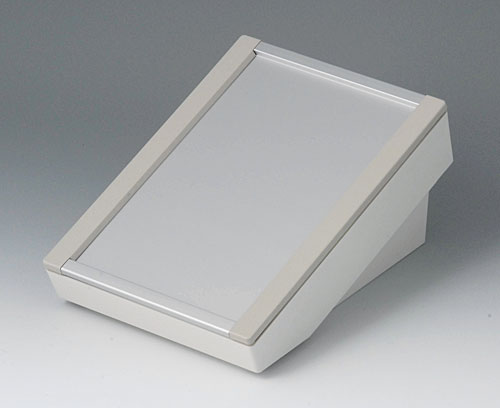 DATEC-TERMINAL S Grundgehäuse mit ergonomisch günstig geneigter Bedienfläche für wahlweisen Einsatz einer Frontplatte, Profilplatte oder Haube. Geeignet für den Einbau von Europa-Karten 100 x 160 mm.