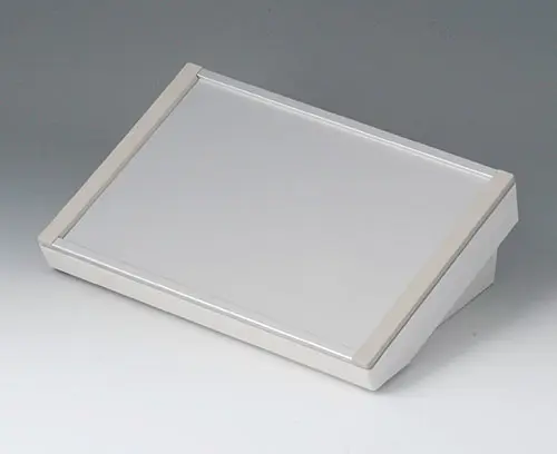 DATEC-TERMINAL SL Grundgehäuse mit großem Bedienfeld. Ergonomisch günstig geneigte Bedienfläche für wahlweisen Einsatz einer Frontplatte, Profilplatte oder Haube. Geeignet für den Einbau von Doppel-Europa-Karten.