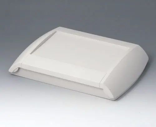 Vierteiliges Kunststoffgehäuse. Das Unterteil kann direkt an der Wand befestigt werden, das Oberteil wird von vorne verschraubt und anschließend das Gehäuse durch 2 seitliche Blenden verschlossen. Die gerasteten Blenden lassen sich bei Bedarf gegen unbefugten Zugriff sichern. Vertieftes Bedienfeld zum Schutz der Folientastatur. Schraubdome im Unter- und Oberteil. Integriertes Batteriefach für 2 x AA / 1 x 9 V.