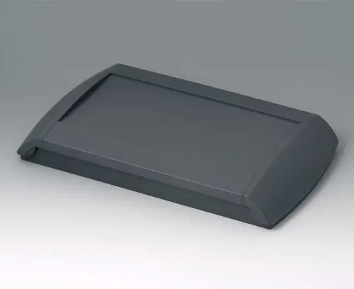 Vierteiliges Kunststoffgehäuse. Das Unterteil kann direkt an der Wand befestigt werden, das Oberteil wird von vorne verschraubt und anschließend das Gehäuse durch 2 seitliche Blenden verschlossen. Die gerasteten Blenden lassen sich bei Bedarf gegen unbefugten Zugriff sichern. Vertieftes Bedienfeld zum Schutz der Folientastatur. Schraubdome im Unter- und Oberteil. Integriertes Batteriefach für 2 x AA / 1 x 9 V. Bei Bedarf lässt sich die Klappe S wahlweise rechts- oder linksseitig zur partiellen (halbseitigen) Abdeckung des Dialogbereichs montieren.