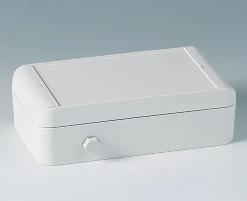 Gehäuseschale 120, mit Dichtung Gehäuseschale mit Gewinde und Befestigungstürme als Einzelteil. Variabel als Ober- und Unterteil verwendbar. Verschraubung außerhalb des Dichtbereichs. Vertiefung von ca. 0,8 mm für den Einsatz von Folientastaturen. Für 1 Gehäuse benötigen Sie je 1 Feder- und 1 Dichtungsteil.