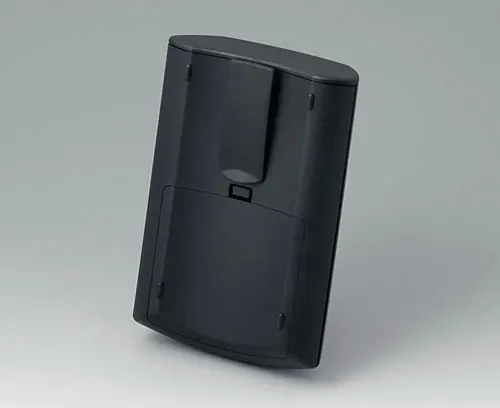 ERGO-CASE M, flach Ergonomisch geformtes Gehäusedesign zum Tragen am Körper. Vertieft liegendes Bedienfeld zum Schutz der Folientastatur. Plane Fläche für individuelle Schnittstellen an der Stirnseite. Batteriefachdeckel rastbar (Batteriefach als Zubehör).