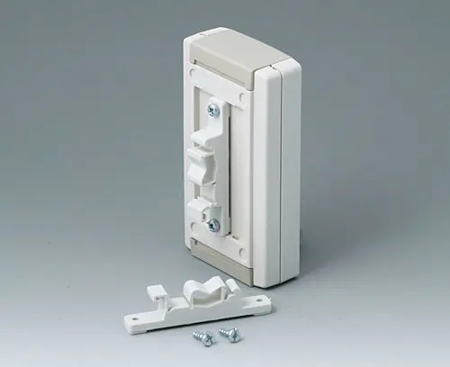 Geeignet für TOPTEC ab Größe 123 F/H und EVOTEC 100/125/150. Ermöglicht eine Befestigung der Gehäuse auf DIN-Schienen nach DIN EN 60715 (TH35, G32). Einfache Montage. 2 Bohrungen ø 3 mm am Gehäuse erforderlich.