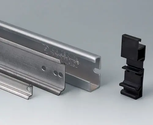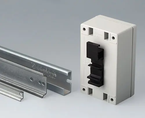 Universell einsetzbar für Kunststoff-Kleingehäuse. Passend für DIN EN 60715 (TH35, TH15 und G32). 2 Schrauben zur Gehäusebefestigung für Wandstärke bis 3 mm. Aufnahmebohrungen siehe Zeichnung.