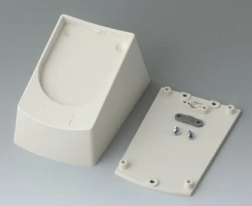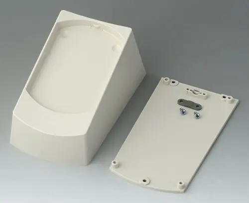 Unter- und Oberteil S110 F Baugruppe: Schraubdome für Platinen im Oberteil. Aufnahme für Batteriefach (Zub.) im Unterteil. Oberteil mit vertieftem Feld für Folientastaturen. Abschluss Gehäuseunterteil (Deckel / Batteriefachdeckel / Sockel / Sockel 30° oder Sockel 55°) als separater Artikel erforderlich.