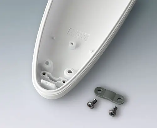 STYLE-CASE L 2-teiliges Handgehäuse in einem ergonomischen robusten Design mit angenehmer Haptik. Dicht bis IP 65 mit Dichtung (Zubehör). Schutzart IP 40 ohne Dichtung. Befestigungsdome für Platinen und Bauteile im Ober- und Unterteil.
