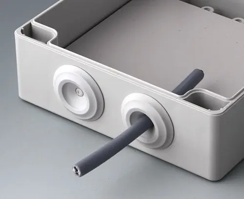 Montagefreundliche einfache Kabeldurchführung mit leicht durchstoßbarer Membran. Auch als Verschluss-Stopfen verwendbar. Halogenfrei. Geeignet für Wandstärken von 0,5 - 3 mm und für Kabeldurchmesser von 6 - 13 mm. Einsatztemperaturen von -50°C bis +125°C. Aufnahmebohrung ø 20,5 mm.