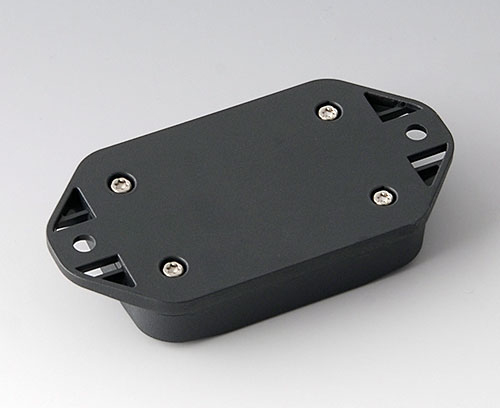 2-teiliges Kunststoffgehäuse mit flachem Oberteil. Unterteil mit integriertem Flansch zur schnellen Wandmontage oder zur Befestigung an Schienen und Rohrprofilen bzw. am Mast. Robuste Konstruktion mit bewährter Nut-/ Federverbindung. Verschraubung mit Edelstahlschrauben und Torx-Antrieb. Fixiersockel für Platinen und Bauteile in Ober- und Unterteil. Die Befestigung auf den Sockeln erfolgt mittels Heißverstemmen.