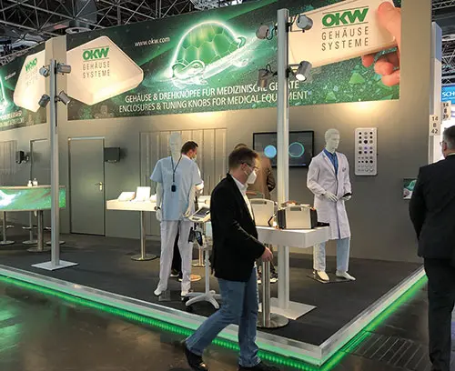 OKW Gehäusesysteme mit Sitz in Buchen ist seit Jahren Aussteller auf der COMPAMED, Fachmesse für Zulieferprodukte und Leistungen der medizinischen Industrie, welche jährlich parallel zur weltweit größten Medizintechnik-Messe MEDICA stattfindet. 46.000 Fachbesucherinnen und -besucher (mit 73 Prozent internationalem Anteil) aus 150 Nationen nutzten letzte Woche die Gelegenheit, um sich im direkten Austausch vor Ort - natürlich alles Corona-konform - bei den 3.033 MEDICA-Ausstellern und 490 COMPAMED-Ausstellern die neuesten Innovationen und Produkte anzuschauen.
