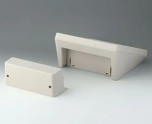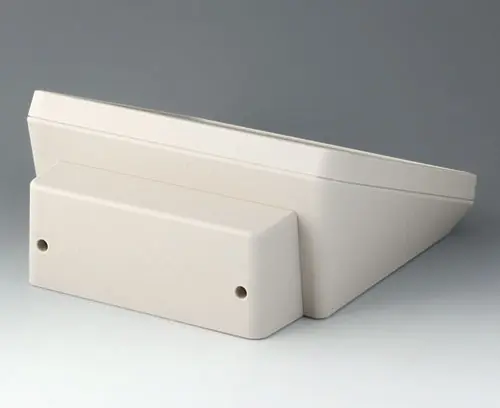 3-teiliges Kunststoffgehäuse in modernem Design mit einer ergonomisch geneigten Bedienfläche. Der im Lieferumfang enthaltene Deckel ermöglicht zusätzliches Einbauvolumen in einem separaten Bereich. Befestigungsdome für Platinen und Bauteile im Ober- und Unterteil. Wandhalter und Dichtung (zur Erhöhung der Schutzart bis IP 65) im Zubehörprogramm. Unsichtbare Verschraubung mit Edelstahlschrauben und Torx-Antrieb. Durch das hochwertige Material  und die robuste Konstruktion auch im Außenbereich einsetzbar.