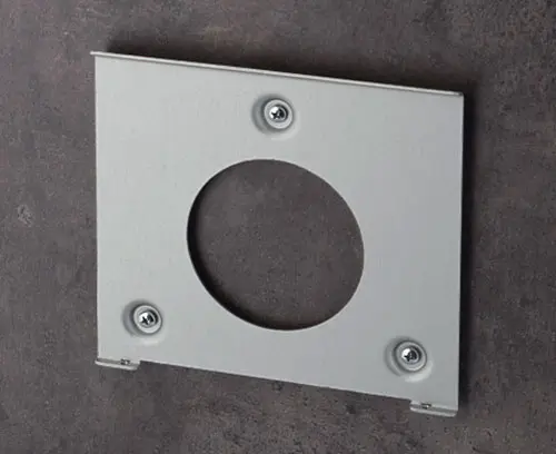 Halter zur soliden und bündigen Befestigung an der Wand. Gehäuse wird im zurückversetzten Schnittstellenareal mit dem Wandhalter verschraubt. Vorteil: Verschraubung befindet sich außerhalb des Sichtbereiches.