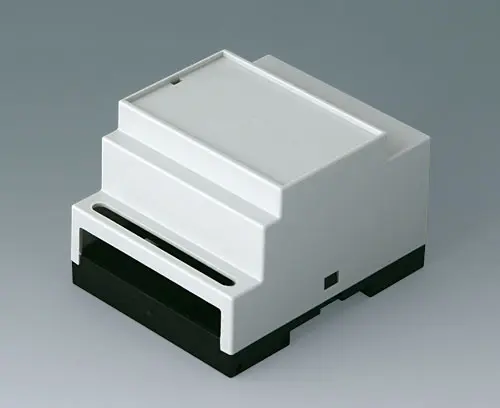Gehäuse für Anwendungen mit größerem Bedarf an Einbauraum. Unterschiedliche Anschlussebenen flach und hoch für individuelle Bestückung. Gehäuse entspricht DIN 43880, Baugröße 1. Einfache und schnelle Rastmontage auf DIN-Schienen EN 60715 TH35. Unterteil mit Befestigungsdomen. Vertikale und horizontale Führungen für zusätzliche Platinen.