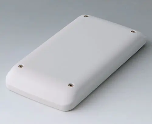2-teiliges Handgehäuse in flachem Design mit großer Bedienfläche bis zu 4" (10 cm). Seitlich gerundete Gehäusekonturen - liegt angenehm in der Hand und ist sicher zu bedienen. Plane Bedienfläche für individuelle Gestaltung und Anordnung von Bedien- und Anzeigeelementen aller Art. Schraubdome für Platinen in Ober- und Unterteil. Dichtung für IP 65 als Zubehör.