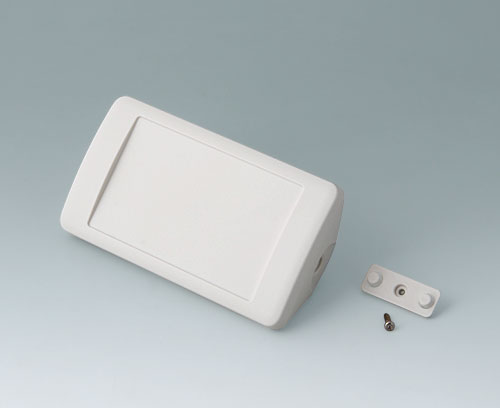 2-teiliges Kunststoffgehäuse mit vertieftem Feld zum Schutz der Folientastatur / Dekorfolie. Die dreieckige Grundform ermöglicht eine Verwendung in Ecken oder einen ergonomischen Aufstellwinkel von 45°. Robuste Konstruktion mit bewährter Nut- und Federverbindung. Verschraubung mit Edelstahlschrauben und Torx-Antrieb. Schutzart IP 40 ohne Dichtung. Befestigungsdome für Platinen und Bauteile in Ober- und Unterteil.