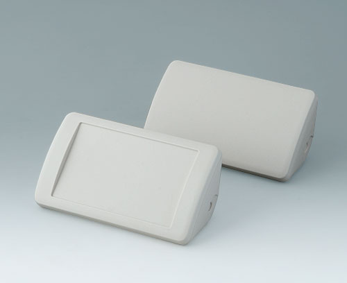 SMART-CONTROL S, Ausf. I 2-teiliges Kunststoffgehäuse mit konvex, gewölbtem Oberteil. Die dreieckige Grundform ermöglicht eine Verwendung in Ecken oder einen ergonomischen Aufstellwinkel von 45°. Robuste Konstruktion mit bewährter Nut- und Federverbindung. Verschraubung mit Edelstahlschrauben und Torx-Antrieb. Schutzart IP 40 ohne Dichtung. Befestigungsdome für Platinen und Bauteile in Ober- und Unterteil.