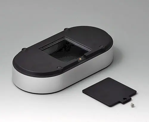 4-teiliges Gehäuse für vielfältige Einsatzbereiche. Stabiler Rahmen aus Aluminium, glasperl-gestrahlt und eloxiert. Kunststoffteile aus ASA+PC-FR mit hohem UV-Schutz und hohem Flammschutz. Befestigungsdome für Platinen und Bauteile im Ober- und Unterteil. Oberteil mit vertieft liegender Fläche zum Schutz der Folientastatur. Unterteil mit Öffnung und Deckel zum Verschrauben: Praktisch für den Einsatz eines Batteriefachs oder als Zugang zum Innenraum, z.B. für Memory Card oder Batterien, die direkt auf der Platine befestigt sind. Batteriefach-Set 4 x AA mit Kontaktfedern, Batterie-Clips, Knopfzellenhalter und Wandbefestigung als Zubehör.