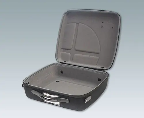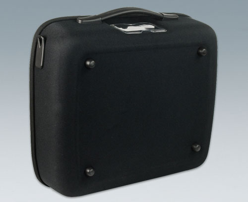 Größte Ausführung der Standardkoffer mit Griff zum Tragen sowie 2 Ösen zur Verwendung des Schultergurtes (Zubehör). Für Ihr Firmenbranding kann der Koffer mit Ihrem Logo oder Namensschild versehen werden (Logo-Fenster, Reißverschluss).