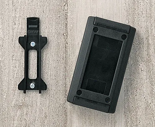Ermöglicht verdeckte Wandmontage. Vorgeformte Taschen in der Gehäuseunterseite ermöglichen es, jedes Gehäuse schnell und sicher auf den Wandhalter zu rasten.