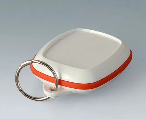 Boitier moderne pour les petits appareils du domaine des technologies portables. Conception en trois parties dont la partie supérieure et la partie inférieure en poli brillant et un joint en TPV mat. Surface en creux pour clavier à membrane ou feuille décorative.