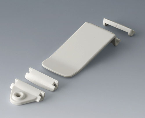 BODY-CASE M, avec zone en creux Boitier moderne pour les petits appareils du domaine des technologies portables. Conception en trois parties dont la partie supérieure et la partie inférieure en poli brillant et un joint en TPV mat. Surface en creux pour clavier à membrane ou feuille décorative.