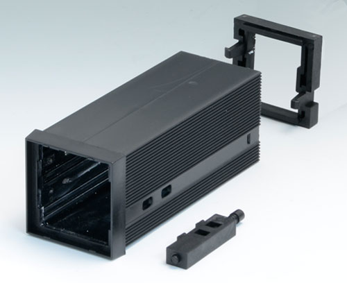 Boitier et face avant sont une pièce. Le cadre arrière ainsi que les plaques frontales et arrières (accessoires) sont assemblés par emboîtement. Avec des barrettes pour la fixation de circuits imprimés à deux côtés. Selon la norme DIN IEC 61554.