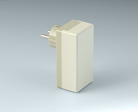 Boitiers prises en deux parties, version française / allemande. Bossages de fixation pour la mise en place des circuits imprimés.