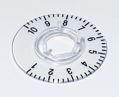 Montage du cadran facile pour boutons ronds et avec papillons 16 / COM-KNOB 16. Surface brillante. Couleur du symbol noir.