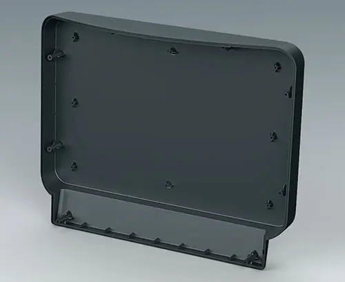 À commander avec le corps du boitier COMMUNITEC S. Comprend une zone en retrait pour la protection des claviers à membrane et l'intégration d'écrans grand format jusqu'à 14" (35 cm), ainsi qu'une surface plane en partie basse pour les éléments de commande et les connecteurs. Des plots de fixation sont intégrés pour les PCB ou les platines de montage. Montage de la face avant par l’arrière.