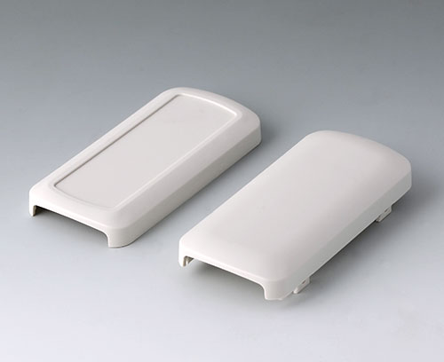 Boitier de base en deux parties, avec coquille de boitier convexe et aplanie. Zone en creux pour protéger le clavier à membrane la feuille décorative ou l’étiquette. Les deux extrémités ouvertes. Elles peuvent recevoir au choix des éléments d’extrémité ou des kits passe-câbles. (accessoires). Quatre bossages de fixation pour un circuit imprimé dans la coquille aplanie. Boitier en plastique entièrement emboîtable.