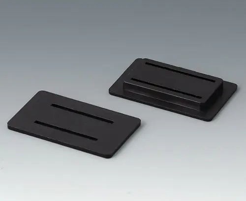 Des découpes sont à prévoir dans le boitier et le socle où seront collées les plaques support. Celles-ci peuvent être préalablement intégrées au boitier et au socle, les fiches (accessoires) pouvant être intégrés ultérieurement.
