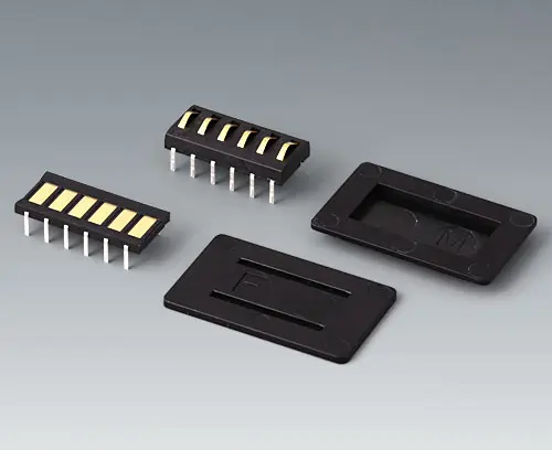 Accessoires universels qui facilitent considérablement le montage de contacts pour la transmission de données et du courant de charge entre le boitier et le socle. Disponibles en accessoires sous forme de jeu de deux plaques support en matière plastique pour loger des fiches modulaires à 6 contacts (version « femelle » pour le boitier et « mâle » pour le socle).