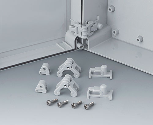 Fourniture Par boitier, une partie inférieure et une partie supérieure avec joint, jeu de montage incl. arrêtoir de partie sup. et 4 vis auto-taraudeuses pour la configuration des éléments à insérer