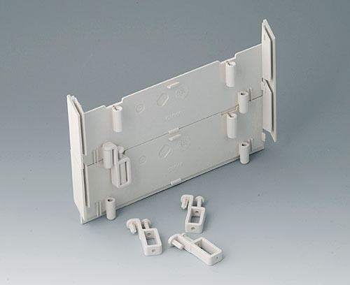 Coquille forme L E 160, avec alésage Comme sous-groupes individuelles : coquille forme L avec alésage pour poignée étrier. Idéal pour le montage de circuits imprimés en format Europe 100 x 160 mm. Obturateur 220 (article séparé) pour couvrir la fixation des vis nécessaire.