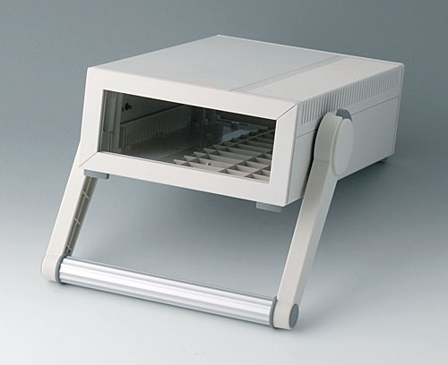 Boitier complet. Idéal pour le montage de circuits imprimés en format Europe 100 x 220 mm ou 100 x 160 mm. Deux coquilles identiques sont assemblées l'une contre l'autre. Les obturateurs sont poussés latéralement. Pieds antidérapants en caoutchouc sont vissés pour obtenir une meilleure stabilité.