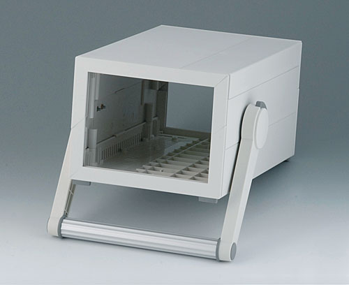 Boitier complet. Idéal pour le montage de circuits imprimés en format Europe 100 x 220 mm ou 100 x 160 mm. Deux coquilles identiques sont assemblées l'une contre l'autre. Les obturateurs sont poussés latéralement. Pieds antidérapants en caoutchouc sont vissés pour obtenir une meilleure stabilité.