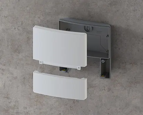 Boitier conçu en trois parties et néanmoins d’apparence uniforme grâce aux vis recouvertes. Combinaison de couleurs modernes en gris clairs et lava. 2 niveaux pour cartes à circuits imprimés, chacun avec quatre bossages de fixation dans la partie électronique. La grande qualité du matériau ASA+PC-FR permet également une utilisation sur le terrain.