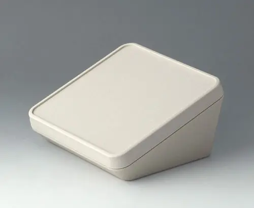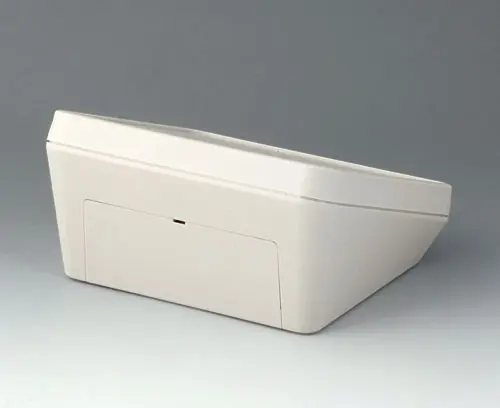Boitier en matière plastique à trois éléments, au design moderne et avec une inclinaison ergonomique de la surface de visualisation et de commande. Le couvercle compris dans la fourniture permet de fermer visuellement la zone interfaces et/ou d’installer d’autres composants électroniques dans un espace à part. Bossages de fixation pour les circuits imprimés et composants dans les parties supérieure et inférieure. Support mural et joint (pour accroître le degré de protection jusqu’à IP 65) dans la gamme des accessoires. Visseries avec vis inox et entrainement Torx dissimulées. Également utilisable en extérieur grâce au matériel haut de gamme et la construction robuste.
