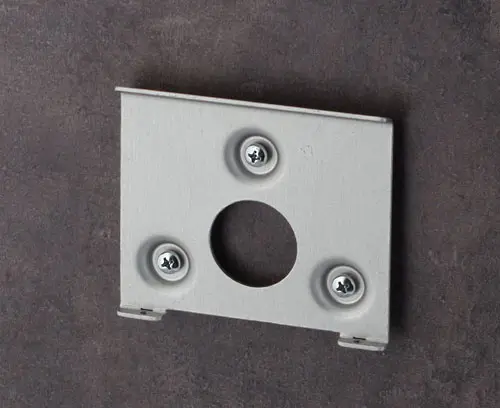 Support pour une fixation au mur solide et jointive. Le boitier se visse au support mural dans la zone interfaces en retrait. Avantage : Les visseries se trouvent hors de la zone visible.