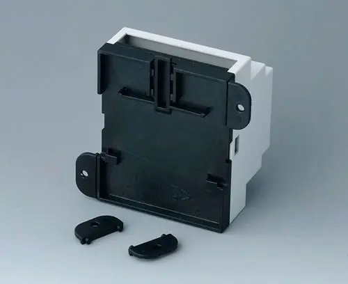 RAILTEC B, 2 modules, Vers. III Boitier selon DIN 43880, taille 1. Assemblage aisé et rapide par encliquetage Rails norme DIN EN 60715 TH35. Le socle est muni de bossages de fixation. Partie supérieure sans fentes d'aération. Deux platines supplémentaires peuvent être mises en place en position verticale et horizontale.