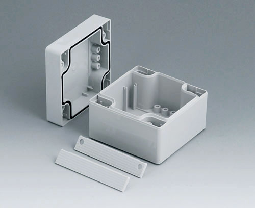 SMART-BOX 90 LARGE Boitier en quatre parties prédestiné aux applications électriques et électroniques. Le joint se trouve déjà dans la partie sup. Vissage hors la zone étanche. Partie en creux pour des claviers. Colonnettes de fixation intégrées pour cartes à circuits et barrettes DIN.