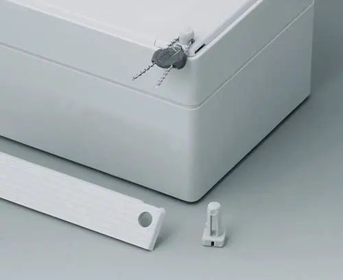 ROBUST-BOX 80 LARGE, Vers. II Boitier en plastique robuste, prédestiné aux applications électriques et électroniqus. Coquilles du boitier utilisable comme partie supérieure ou inférieure au choix. Dans chaque partie du boitier il se trouvent des filetages et bossages de fixation. Vissage hors la zone étanche. Creux d'environ 0,8 mm pour l'utilisation des claviers.