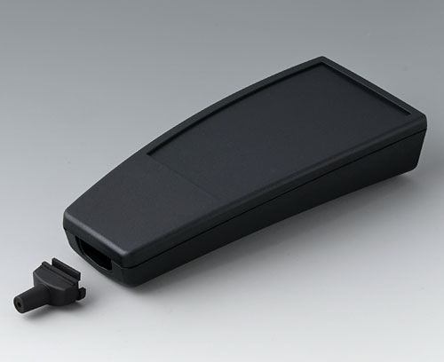 Boitier en trois parties avec passe-câble. Passe-câble simplément à insérer, pour câble rond. Avec surface en creux, par ex. pour claviers à membrane souple. Possibilité de fixer le circuit imprimé dans la partie supérieure et inférieure.