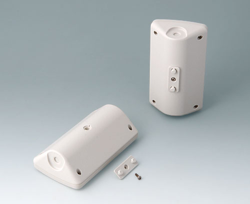 Boitier en matière plastique en deux parties avec une zone en creux pour protéger le clavier à membrane/la feuille décorative. La forme de base triangulaire permet une utilisation dans les coins ou une disposition ergonomique avec un angle de positionnement de 45°. Conception robuste avec un assemblage par rainure et languette qui a fait ses preuves. Vissage avec des vis inox et entrainement Torx. Degré de protection IP 40 sans jeu de joint. Bossages de fixation pour circuits imprimés et composants dans les parties supérieure et inférieure.