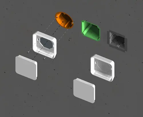 Boitier en matière plastique en deux parties, au design noble, avec partie supérieure plate. Bossages de fixation pour circuits imprimés et modules dans la partie supérieure. Partie inférieure aux contours préformés pour la découpe et la fixation sur des boîtes d'encastrement / boîtes cloison sèche (usinage ultérieur nécessaire). Encliquetage sécurisé de la partie supérieure et inférieure, rationnel lors de l'assemblage final. Pour ouvrir facilement les boitiers, nous recommandons d’utiliser les outils de décliquetage pratiques, disponibles en accessoires. Partie en creux pour la protection de clavier. Plaque de papier dur, plaque de verre et feuille adhésive dans la gamme d’accessoires. Grâce au matériau de haute qualité (UL 94 V-0) et aux formes élégantes, il convient parfaitement à une utilisation dans la technologie moderne des bâtiments.